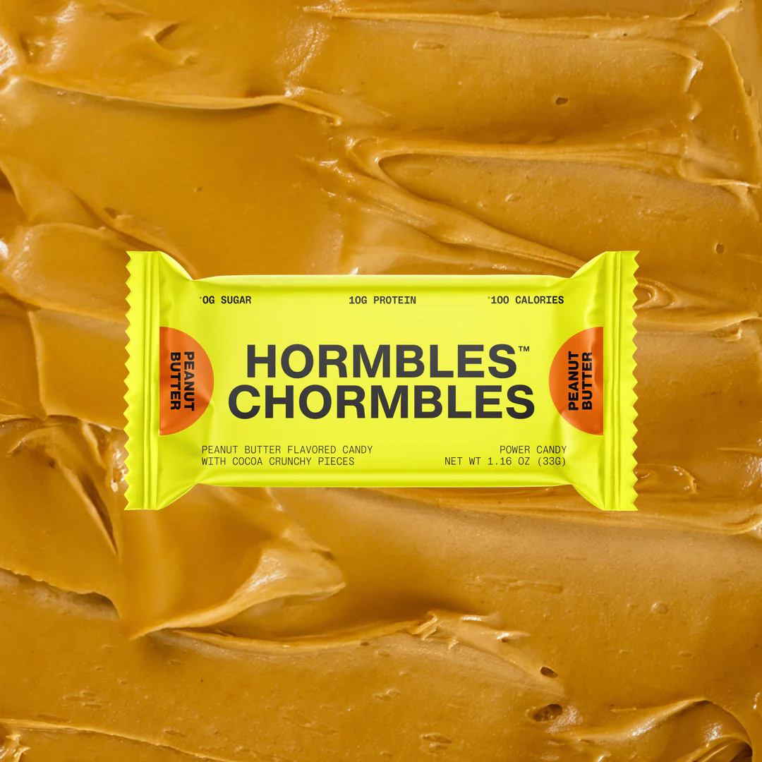 Hormbles Chormbles Peanut Butter Protein Candy Bars offer a creamy peanut butter flavor combined with crunchy cocoa bits for an indulgent snack experience. Each bar delivers 10 g of protein, 0 g of sugar, and 100 calories, making it a satisfying, guilt‑reduced treat that balances taste and nutrition.
