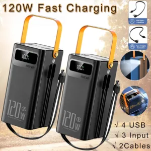 Despite its massive capacity, this power bank is surprisingly compact and lightweight, making it ideal for travel, outdoor adventures, or everyday use. Its sleek and ergonomic design fits comfortably in your hand or pocket, allowing you to carry it with ease wherever you go. Whether you’re commuting to work, exploring the great outdoors, or simply relaxing at home, this power bank provides reliable backup power whenever you need it most.