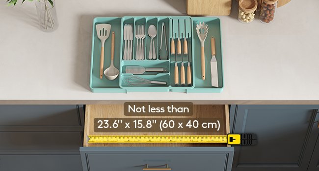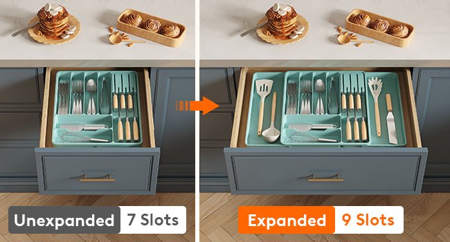 • Large Capacity: Organise your kitchen countertop and make more space with the cutlery drawer organiser. Comes with two expandable panels on the left and right to store more cutlery, utensils, and kitchen silverware.
